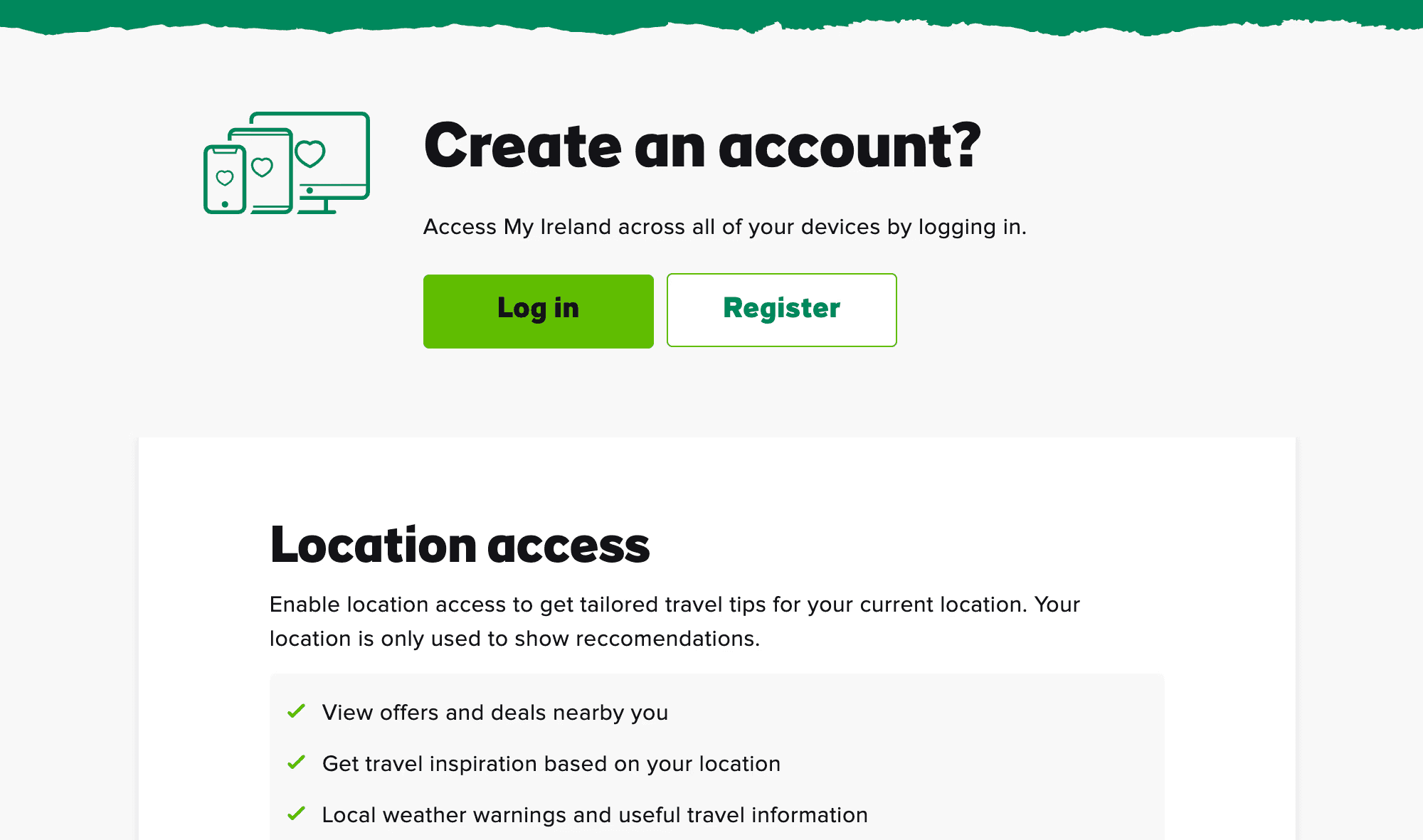 This language helped reduce friction at the start of the journey and set expectations for how My Ireland would support users throughout their trip planning.