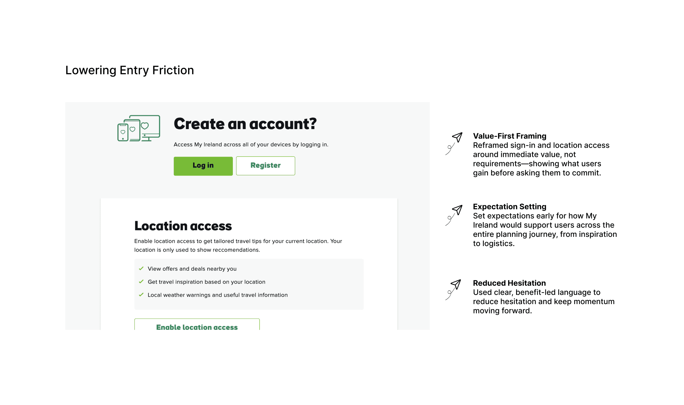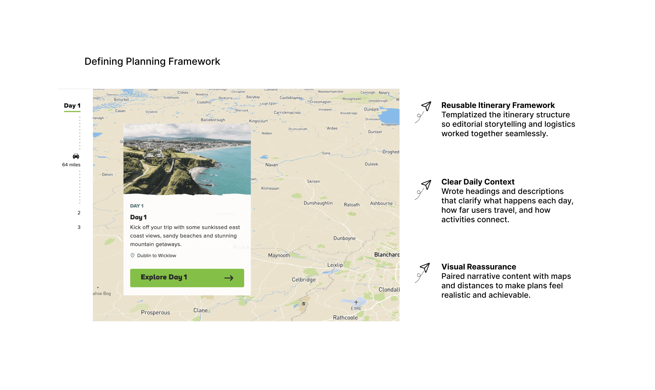 The My Ireland experience transformed scattered content into a cohesive, joyful platform where users could easily plan their trip in one place. The hub strengthened Ireland.com’s ability to inspire visitors and support them throughout every stage of planning.